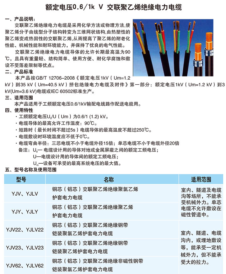 額定電壓0.6/1k V 交聯聚乙烯絕緣電力電纜